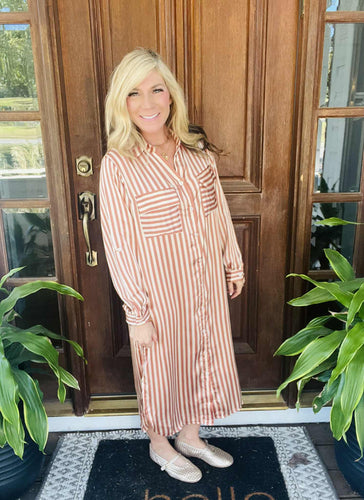 Copper & Taupe Striped Satin Dress