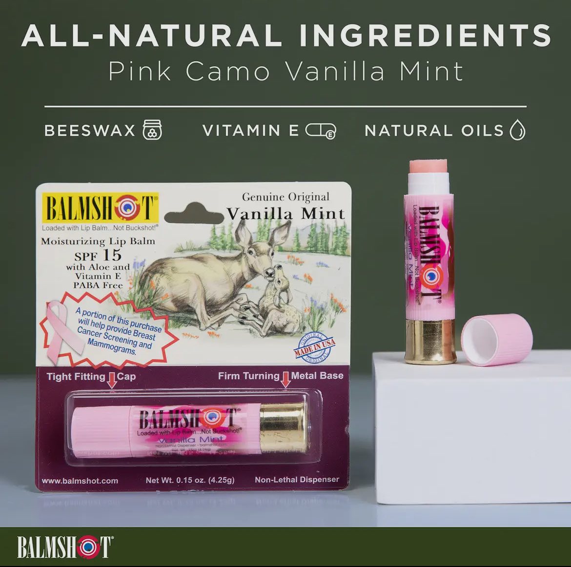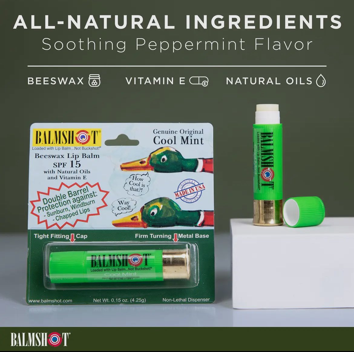 TIGHT FITTING CAP & DURABLE CASE: Lip balm comes in an Authentic Shotgun Shell tube. The Smooth Turning Metal Base keeps the lip balm from twisting in your pocket. The Cap is Tight Fitting and Won’t Fall Off. The Shotgun Shell tube is sturdy and cool to carry. Unique formulation Holds Up in the Harshest Conditions.