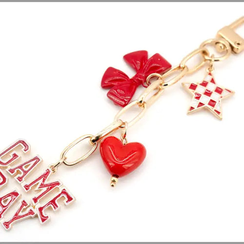 RED Gameday Bag Charm with Star, Bow, and Heart!