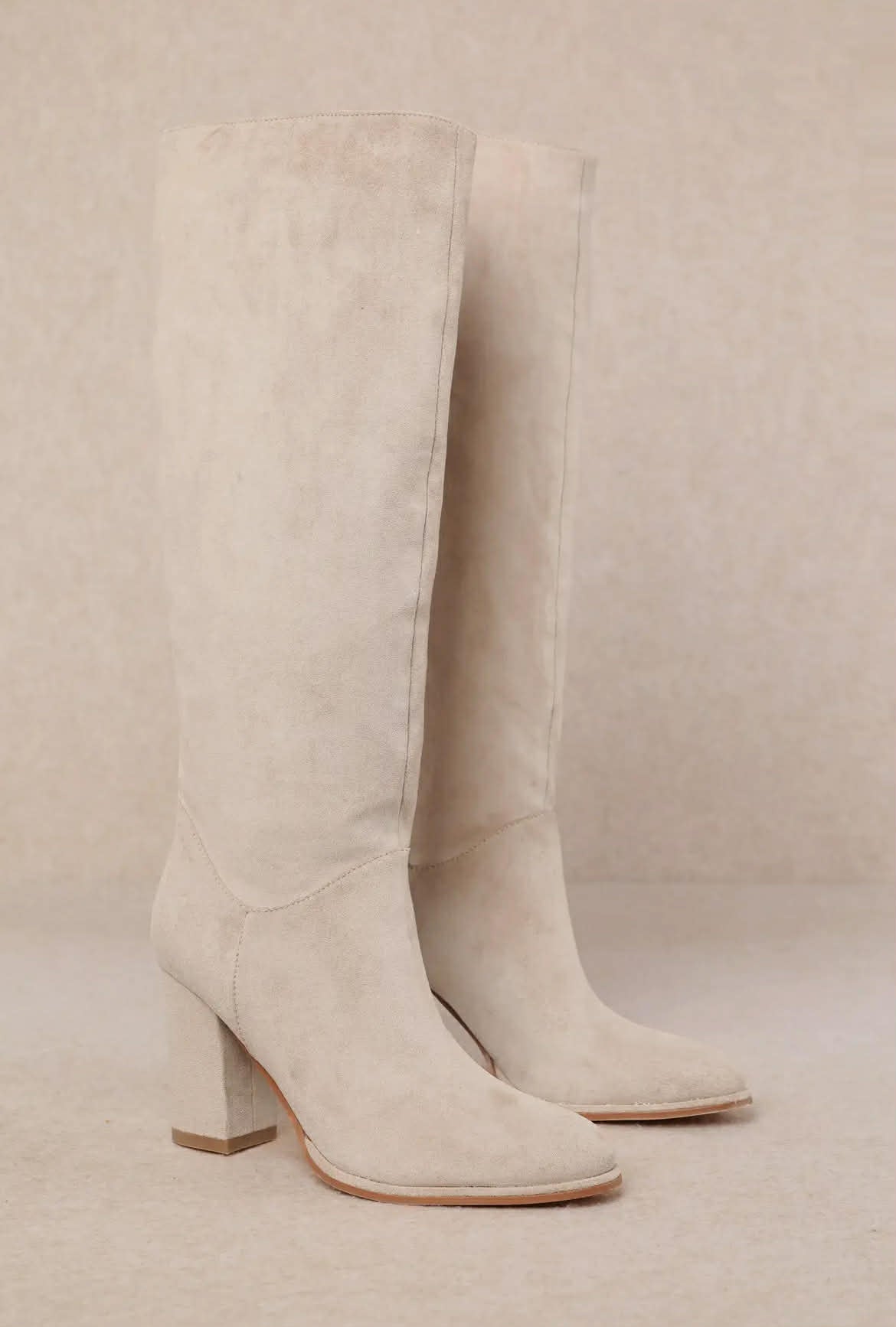Step out in timeless elegance with these knee-high boots featuring a sleek shaft and a chunky stacked heel for stable comfort. Perfect for pairing with both casual and dressy outfits, these boots blend classic design with modern flair. Elevate your seasonal wardrobe effortlessly with their versatile style and sophisticated silhouette.