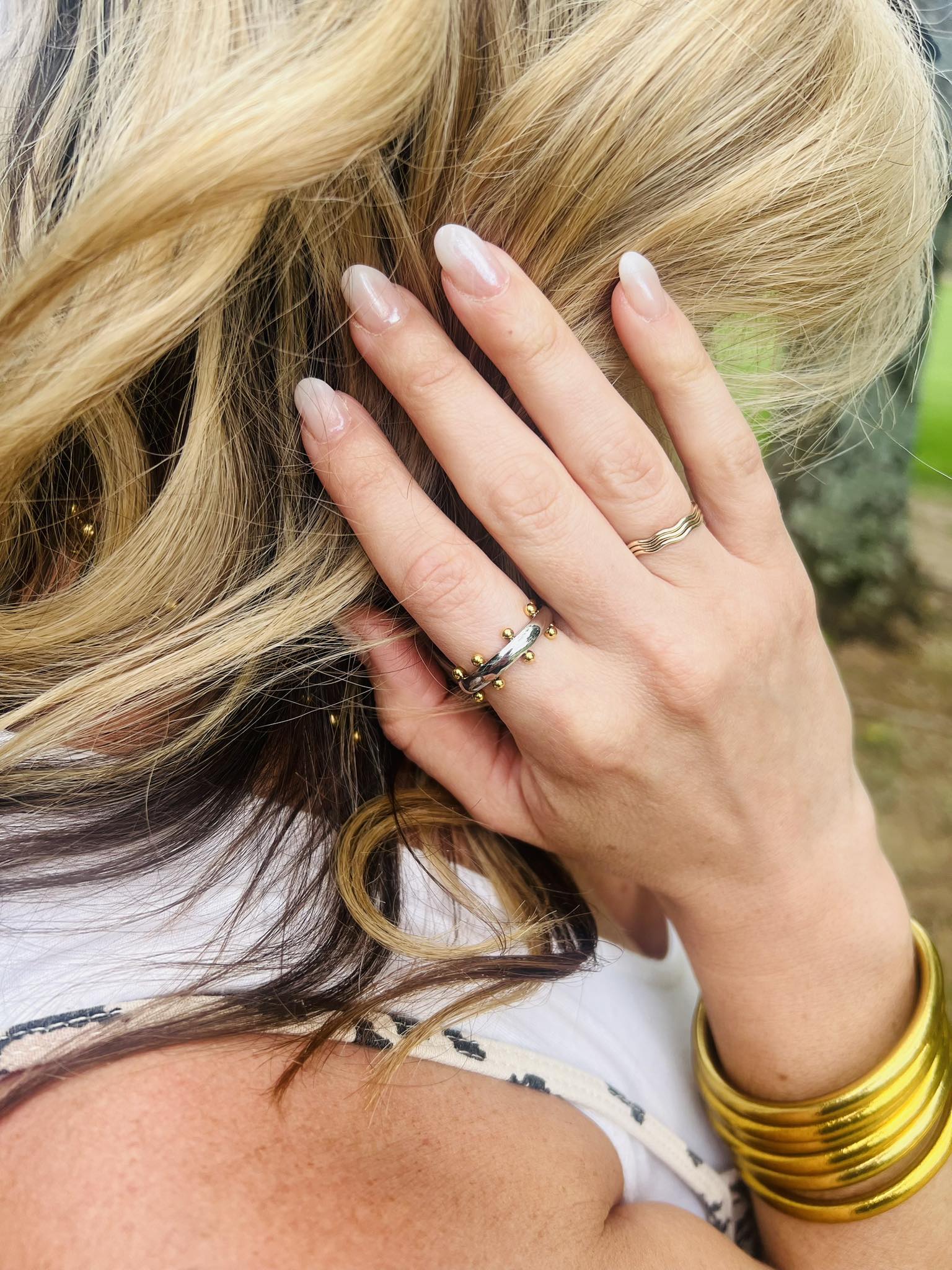 Water-Resistant Mixed Metal Ball Detail Ring