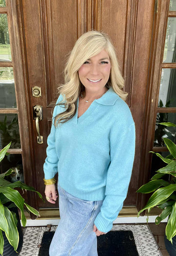 Sky Blue Collared Sweater Top