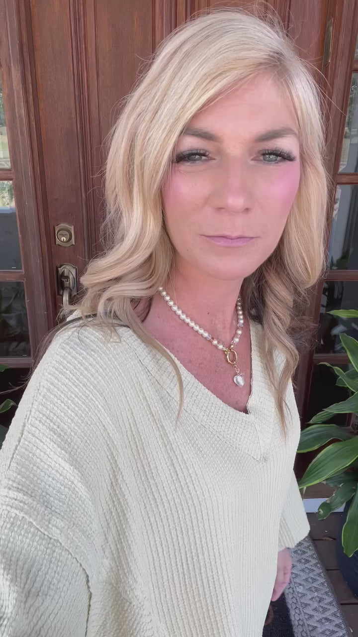 Matcha Latte Textured Oversized V-Neck Top